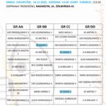 Harmonogram rozgrywek w lidze kadetek. Mecze domowe rozgrywamy w SP 127 ul. Kowieńska 12/20 Warszawa 3 października (piątek) – KS Halinów (mecz domowy) – rozgrzewka 17:15, start meczu: 18:00 4 października (sobota) – Ósemka Siedlce (mecz wyjazdowy, transport busem) – start meczu: 16:00 10 października (piątek) – Ósemka Siedlce (mecz domowy) – rozgrzewka 17:15, start meczu: 18:00 11 października (sobota) – Volley Wyszków (mecz wyjazdowy, transport busem), start meczu: 13:00 24 października (piątek) – Volley Wyszków (mecz domowy) – rozgrzewka 17:15, start meczu: 18:00 31 października (piątek) – Legia Warszawa (mecz domowy) – rozgrzewka 17:15, start meczu: 18:00 8 listopada (sobota) – KS Halinów (mecz wyjazdowy, transport we własnym zakresie) – hala sportowa w Halinowie przy ul. Okuniewskiej 115, zbiórka 11:15, start meczu o 12:00 22 listopada (sobota) – Legia Warszawa (mecz wyjazdowy, transport we własnym zakresie) – hala sportowa ul. Króla Maciusia 5 w Warszawie, zbiórka 13:15, start meczu o 14:00 II LIGA (sobota i niedziela) VI Liga gr. B (sobota) ul. Żółwińska 41 – Nadarzyn Chłopcy – zbiórka 12:30 II LIGA (niedziela) VIII Liga gr. B (niedziela) „Wola Cup 2025 – Siatkówka wśród Gwiazd” 21-23.11.2025 KS Saska Warszawa: Krzemień, Klepacki, Małecki, Karpiński,… GRUPA D PIĄTEK kolejne mecze w zależności od wyników… https://drive.google.com/file/d/1Sxb6NLV6XzQpFItj85rBdY5WcvfOLaNa/view?usp=sharing „Wola Cup 2025 – Siatkówka wśród Gwiazd” 21-23.11.2025 KS Saska Warszawa: Krzemień, Klepacki, Małecki, Karpiński,… SOBOTA kolejne mecze w zależności od wyników… https://drive.google.com/file/d/1Sxb6NLV6XzQpFItj85rBdY5WcvfOLaNa/view?usp=sharing IV liga KS Saska Warszawa: Koczyk, Trochym, Owczarczyk, Serkowski, Czajka, Kowalski, … KOLEJNE TURNIEJE: Harmonogram rozgrywek w lidze kadetek. Mecze domowe rozgrywamy w SP 127 ul. Kowieńska 12/20 Warszawa 3 października (piątek) – KS Halinów (mecz domowy) – rozgrzewka 17:15, start meczu: 18:00 4 października (sobota) – Ósemka Siedlce (mecz wyjazdowy, transport busem) – start meczu: 16:00 10 października (piątek) – Ósemka Siedlce (mecz domowy) – rozgrzewka 17:15, start meczu: 18:00 11 października (sobota) – Volley Wyszków (mecz wyjazdowy, transport busem), start meczu: 13:00 24 października (piątek) – Volley Wyszków (mecz domowy) – rozgrzewka 17:15, start meczu: 18:00 31 października (piątek) – Legia Warszawa (mecz domowy) – rozgrzewka 17:15, start meczu: 18:00 8 listopada (sobota) – KS Halinów (mecz wyjazdowy, transport we własnym zakresie) – hala sportowa w Halinowie przy ul. Okuniewskiej 115, zbiórka 11:15, start meczu o 12:00 22 listopada (sobota) – Legia Warszawa (mecz wyjazdowy, transport we własnym zakresie) – hala sportowa ul. Króla Maciusia 5 w Warszawie, zbiórka 13:15, start meczu o 14:00 „Wola Cup 2025 – Siatkówka wśród Gwiazd” 21-23.11.2025 KS Saska Warszawa: Krzemień, Klepacki, Małecki, Karpiński,… SOBOTA kolejne mecze w zależności od wyników… https://drive.google.com/file/d/1Sxb6NLV6XzQpFItj85rBdY5WcvfOLaNa/view?usp=sharing IV liga KS Saska Warszawa: Koczyk, Trochym, Owczarczyk, Serkowski, Czajka, Kowalski, … KOLEJNE TURNIEJE: Harmonogram rozgrywek w lidze kadetek. Mecze domowe rozgrywamy w SP 127 ul. Kowieńska 12/20 Warszawa 3 października (piątek) – KS Halinów (mecz domowy) – rozgrzewka 17:15, start meczu: 18:00 4 października (sobota) – Ósemka Siedlce (mecz wyjazdowy, transport busem) – start meczu: 16:00 10 października (piątek) – Ósemka Siedlce (mecz domowy) – rozgrzewka 17:15, start meczu: 18:00 11 października (sobota) – Volley Wyszków (mecz wyjazdowy, transport busem), start meczu: 13:00 24 października (piątek) – Volley Wyszków (mecz domowy) – rozgrzewka 17:15, start meczu: 18:00 31 października (piątek) – Legia Warszawa (mecz domowy) – rozgrzewka 17:15, start meczu: 18:00 8 listopada (sobota) – KS Halinów (mecz wyjazdowy, transport we własnym zakresie) – hala sportowa w Halinowie przy ul. Okuniewskiej 115, zbiórka 11:15, start meczu o 12:00 22 listopada (sobota) – Legia Warszawa (mecz wyjazdowy, transport we własnym zakresie) – hala sportowa ul. Króla Maciusia 5 w Warszawie, zbiórka 13:15, start meczu o 14:00 „Wola Cup 2025 – Siatkówka wśród Gwiazd” 21-23.11.2025 KS Saska Warszawa: Krzemień, Klepacki, Małecki, Karpiński,… START w pt. ok 14:00 https://drive.google.com/file/d/1Sxb6NLV6XzQpFItj85rBdY5WcvfOLaNa/view?usp=sharing https://turniej-wyniki.alwaysdata.net/organizator/ca1c58ce-7445-4ad6-9f1b-b3bc0b71c3c2 Saska I: Krzemień, Karpiński, Klepacki, Małecki, …
