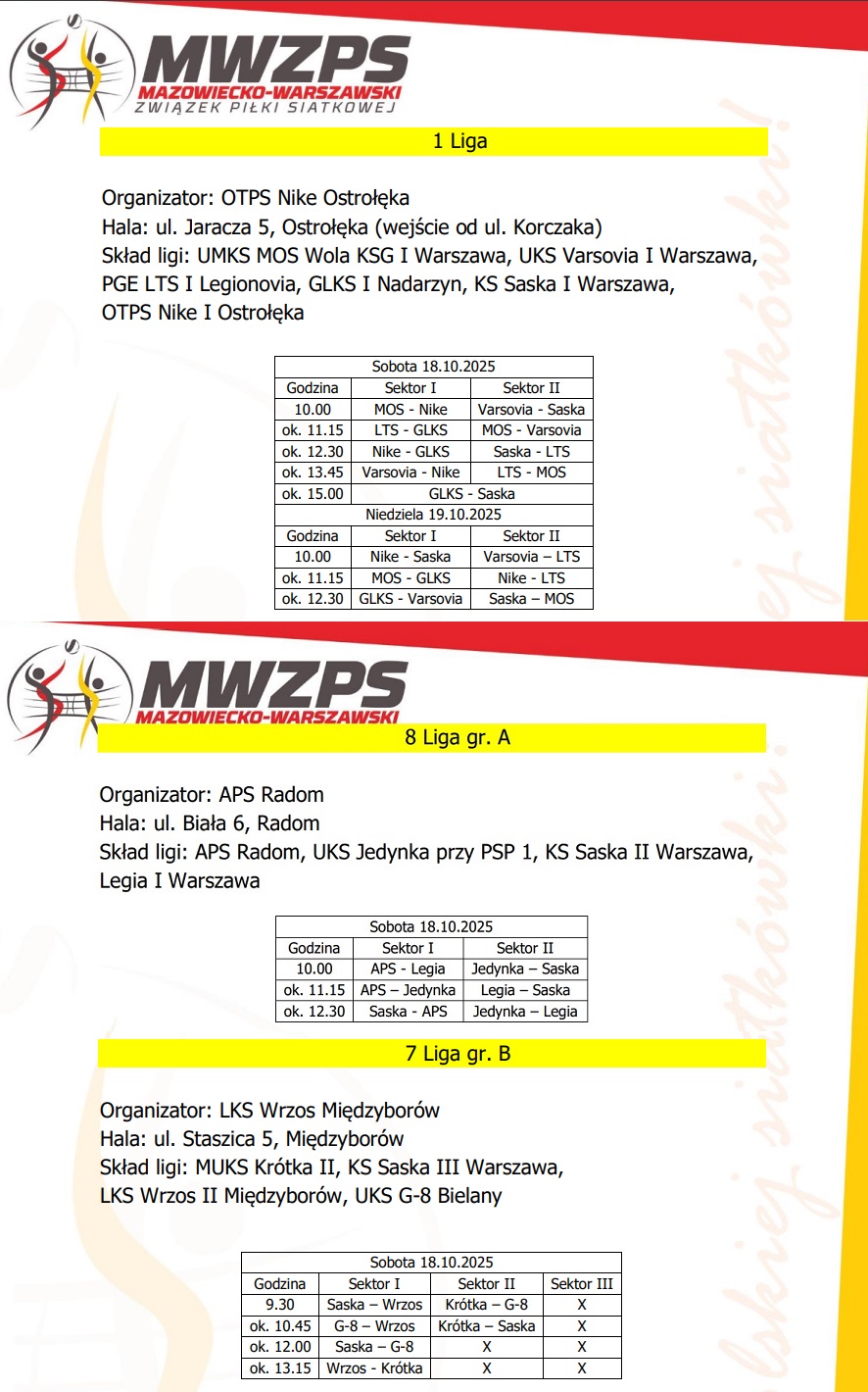 Mistrzostwa Mazowsza Młodziczek – I turniej ligowy (Saska I, Saska II i Saska III)