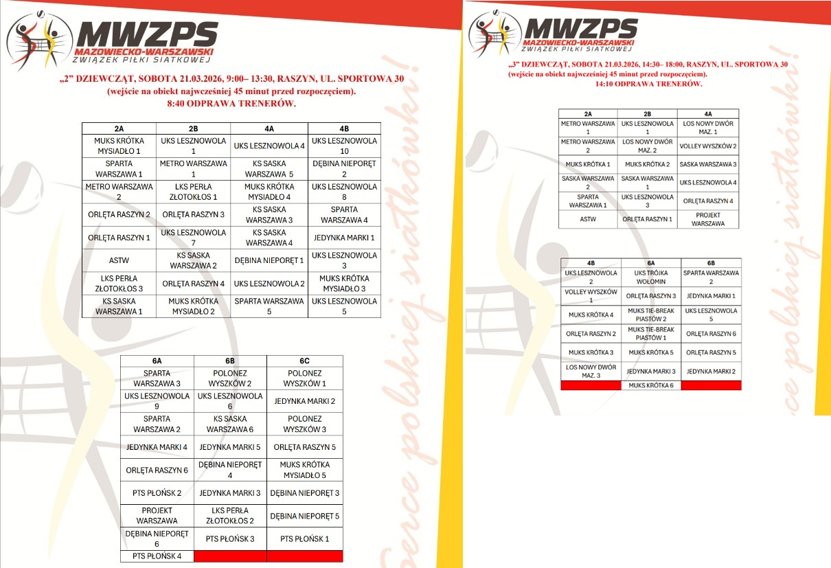 „2” DZIEWCZĄT, SOBOTA 21.03.2026, 9:00– 13:30, RASZYN, UL. SPORTOWA 30